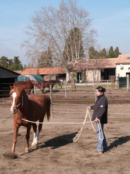 Monitrice d’équitation diplômée d’état (BPJEPS), formée à l’équitation éthologique et au travail en liberté