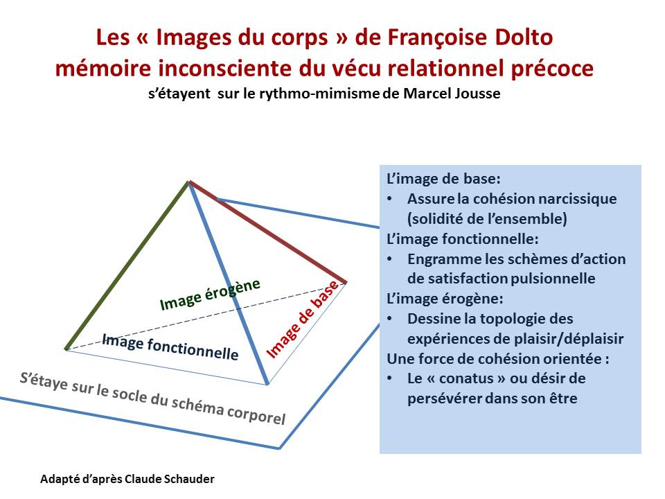 - Donne un socle cohérent et même quasi naturel aux trois images du corps de Dolto ou aux deux images de Gisela Pankow