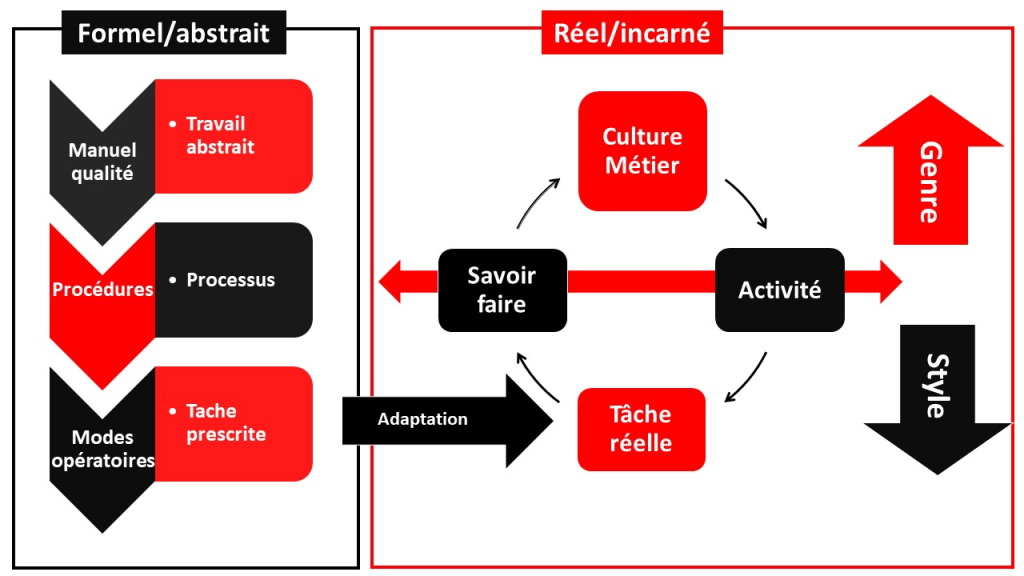 Mais le réel résiste et la confrontation de la tache prescrite aux contraintes de la réalité nécessite de la part du travailleur une intelligence adaptative et un savoir-faire spécifique qui constitue le style, son style.